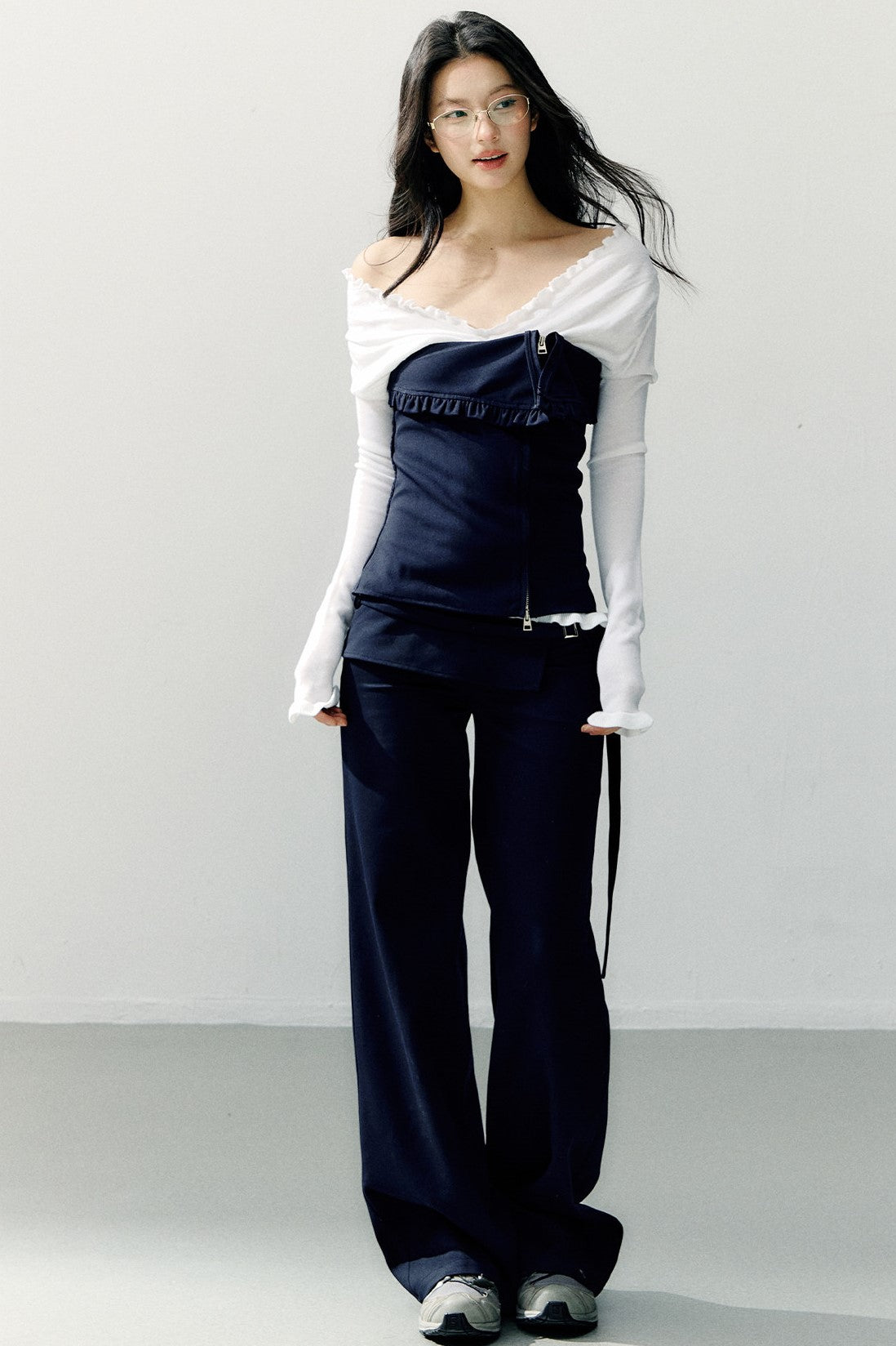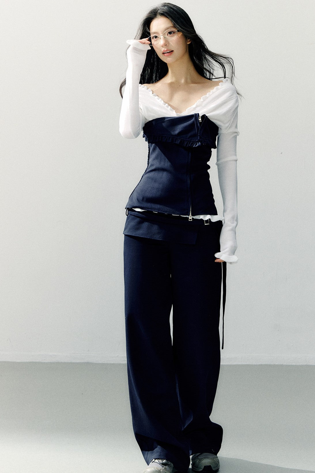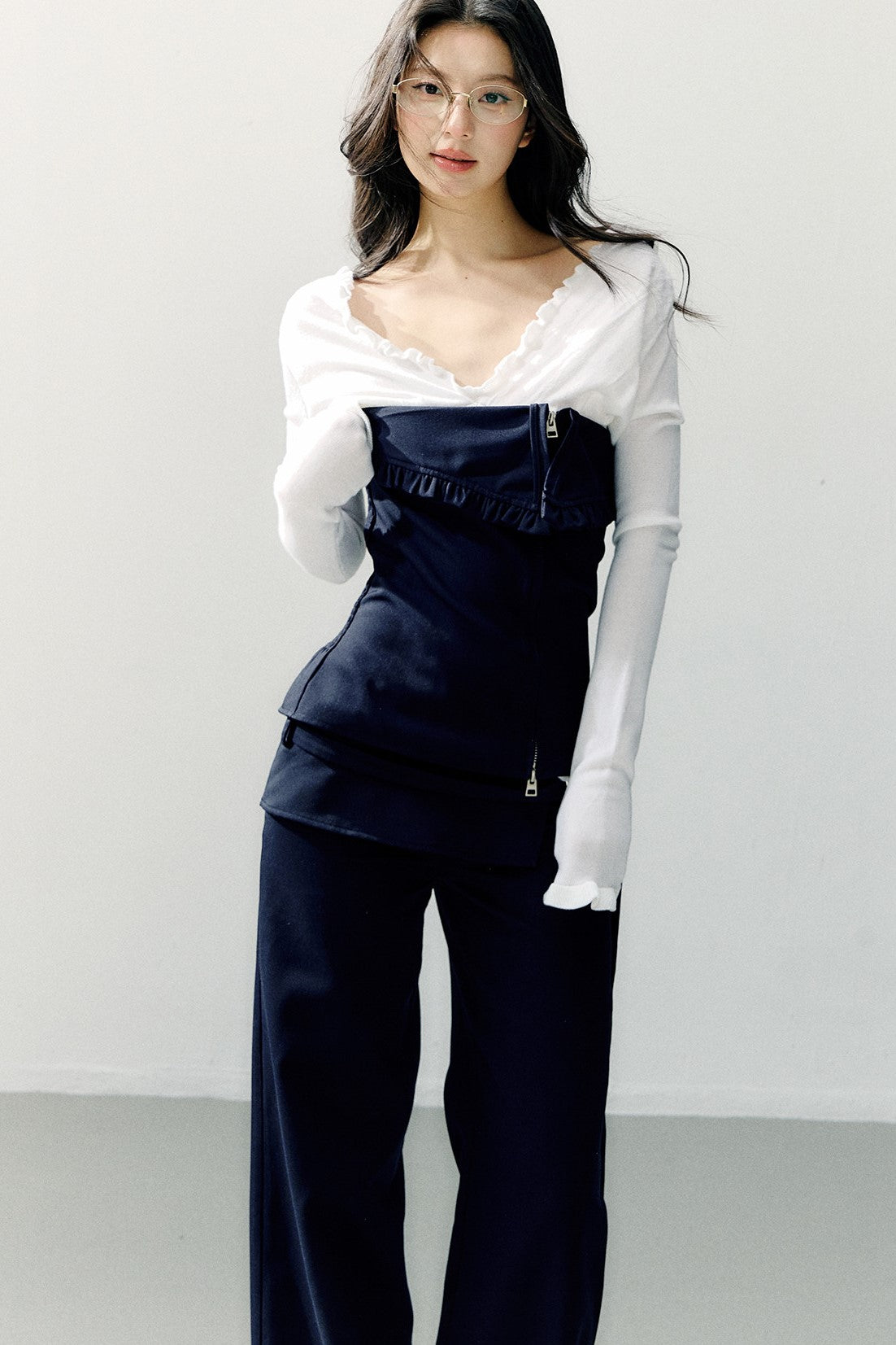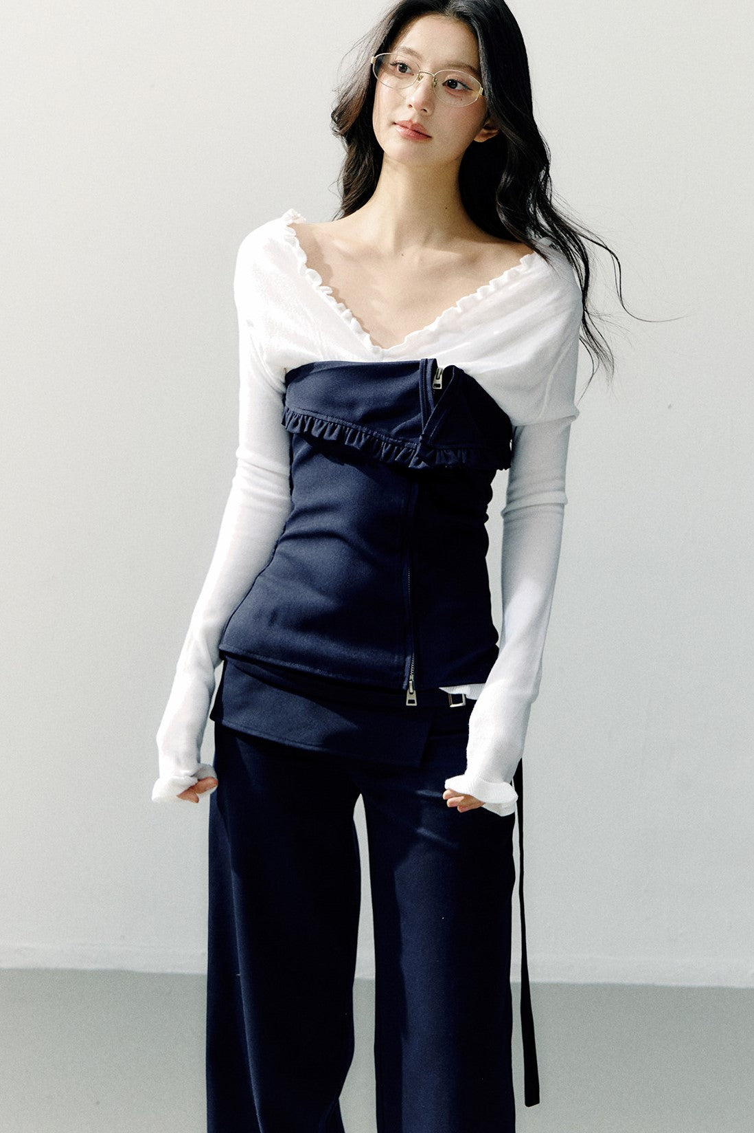 Navy Blue Zipper Ruffled Tube Top SHI0275