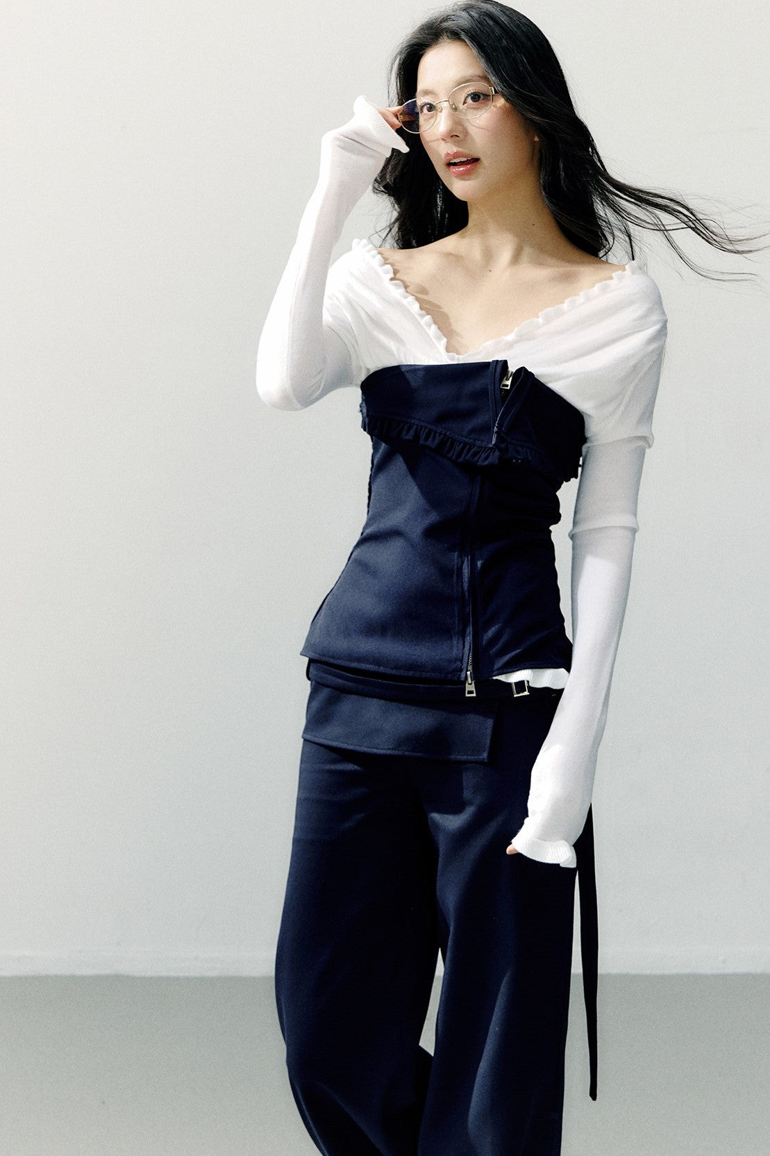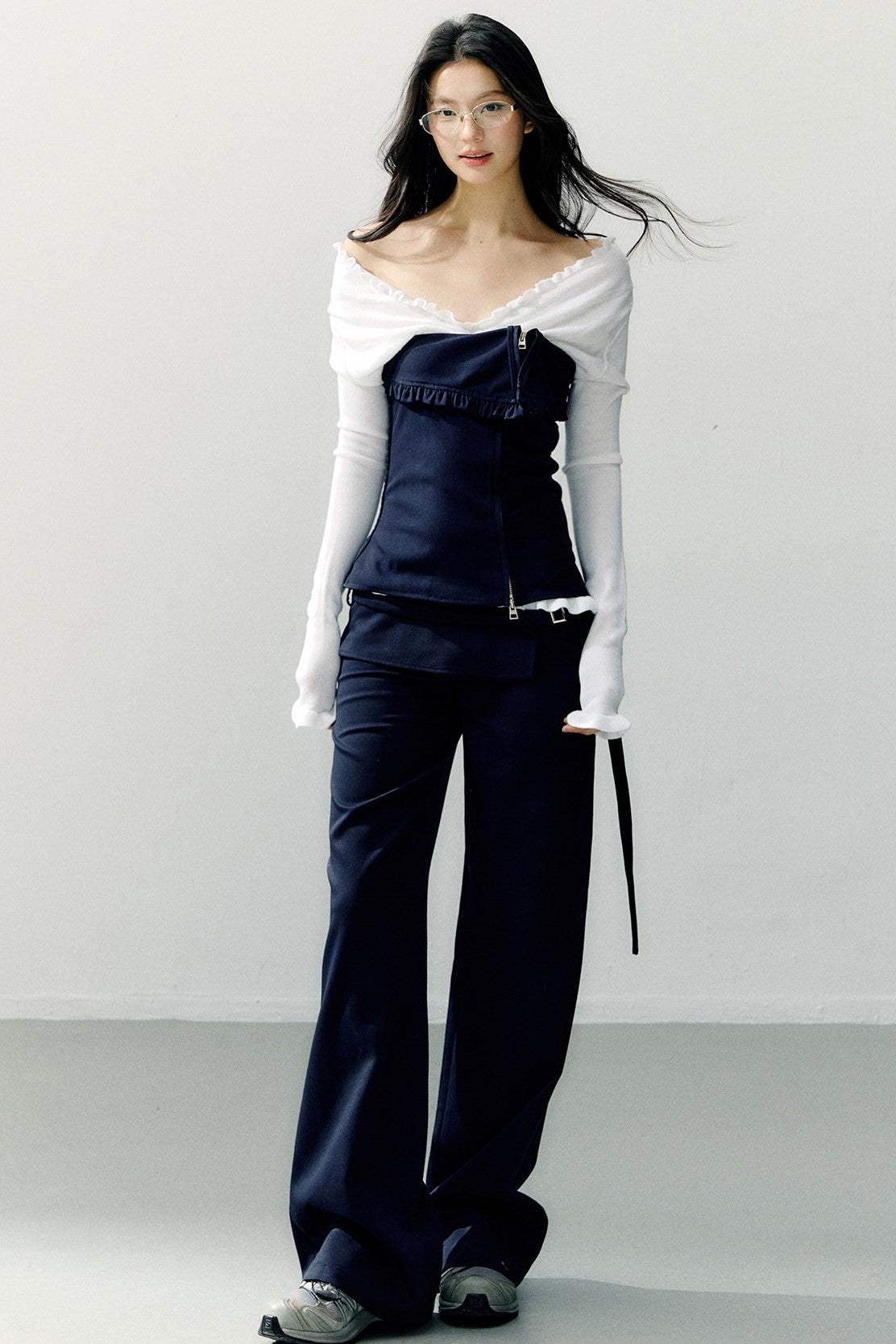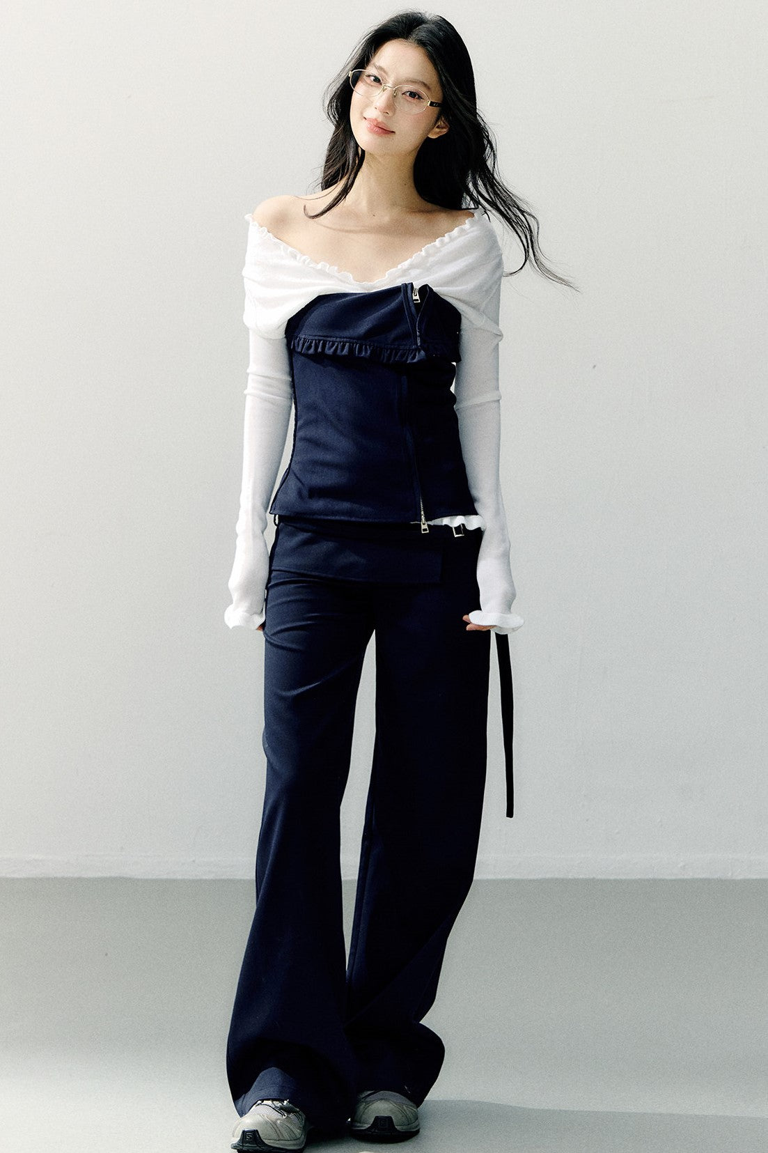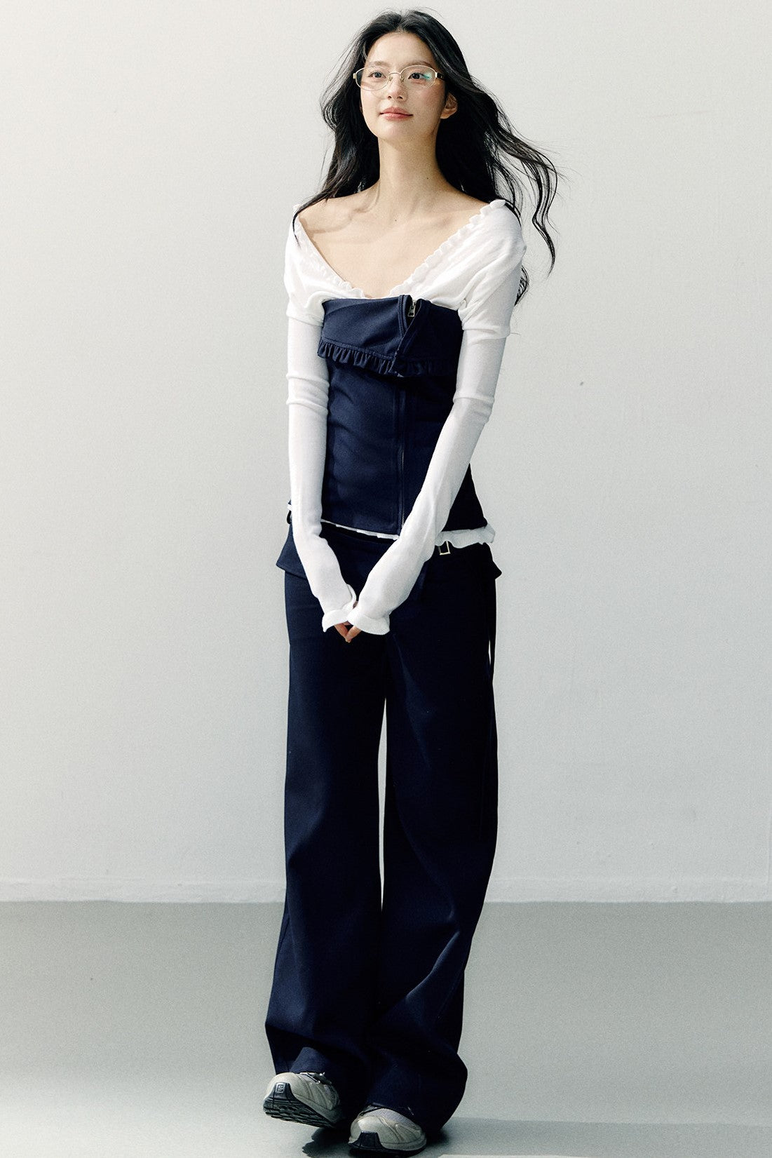 Navy Blue Zipper Ruffled Tube Top SHI0275