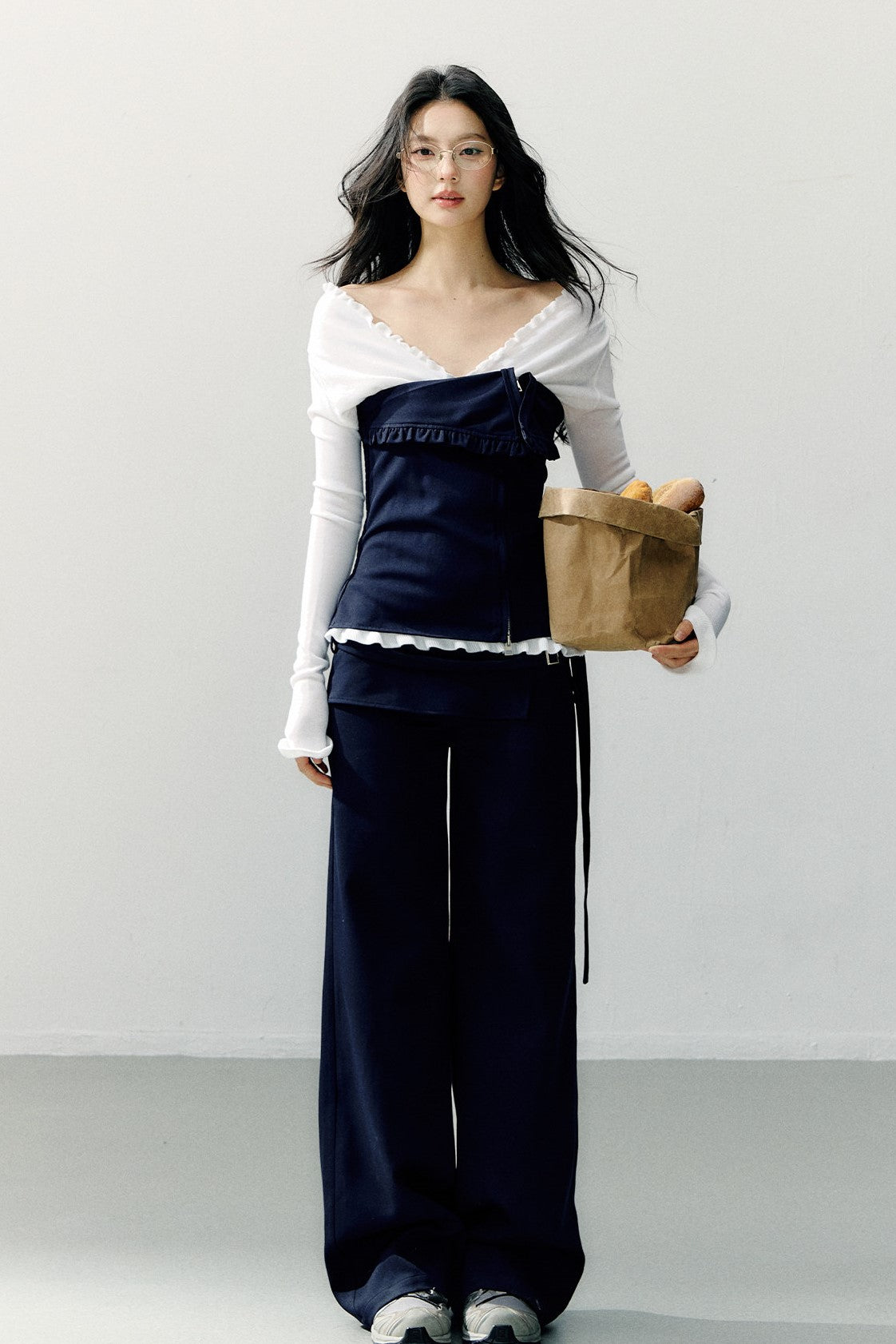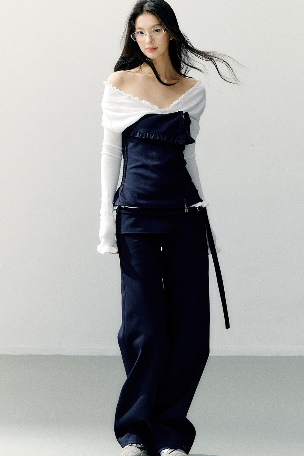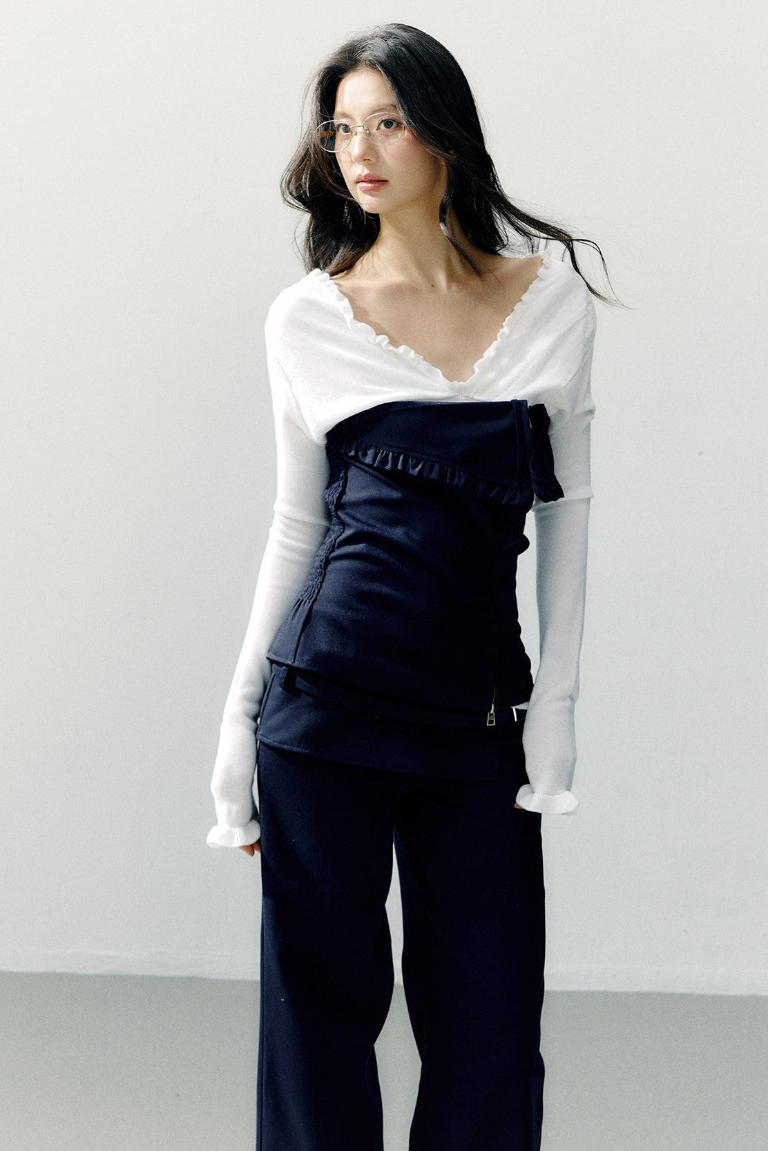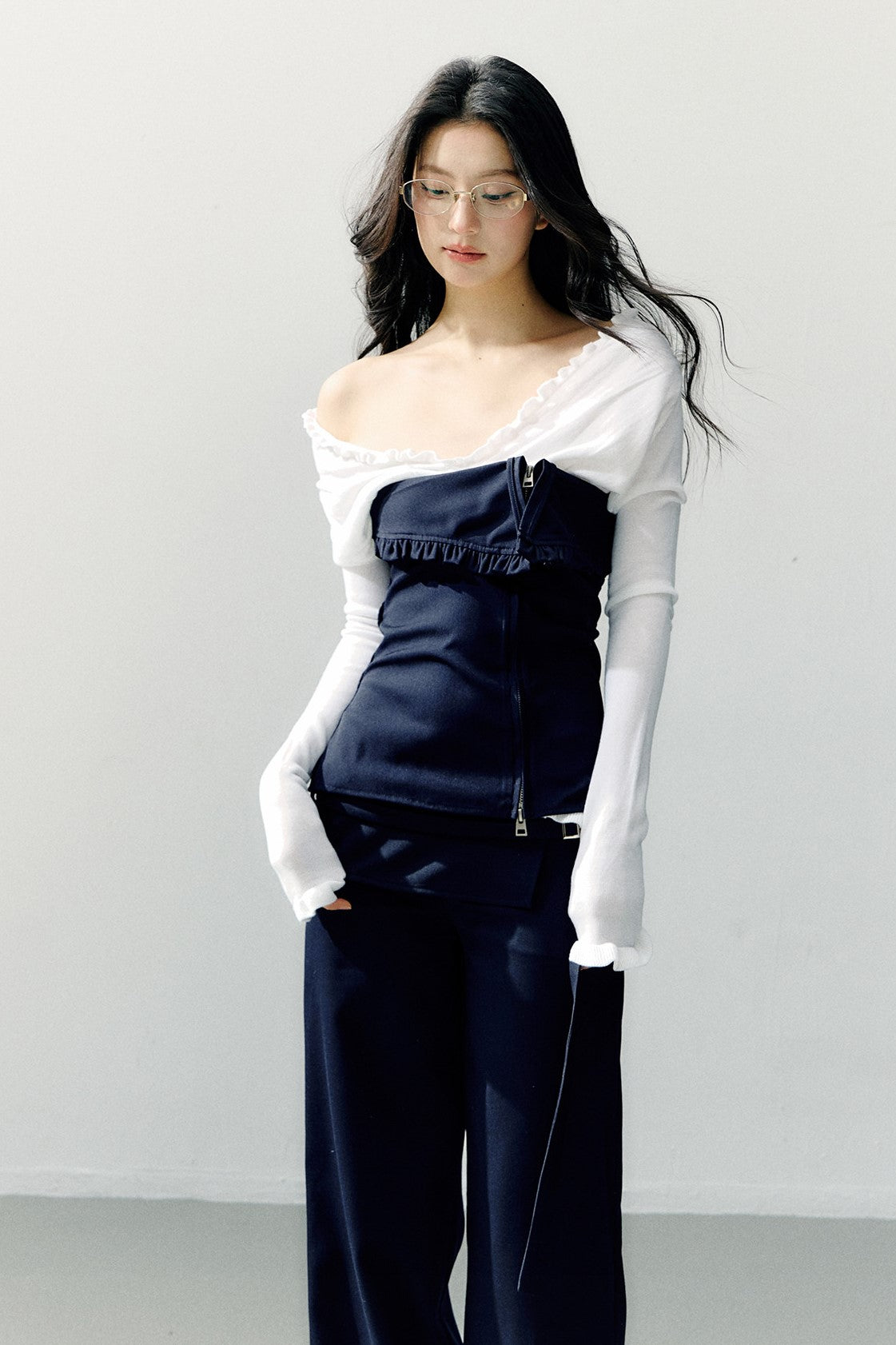 Navy Blue Zipper Ruffled Tube Top SHI0275