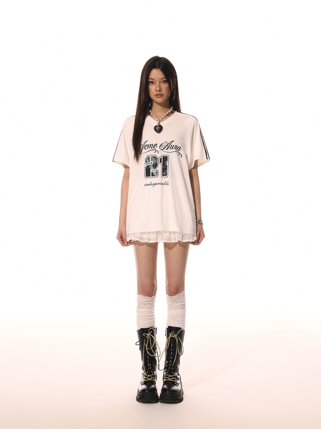 Letter Print V-neck Casual T-shirt ACM0089
