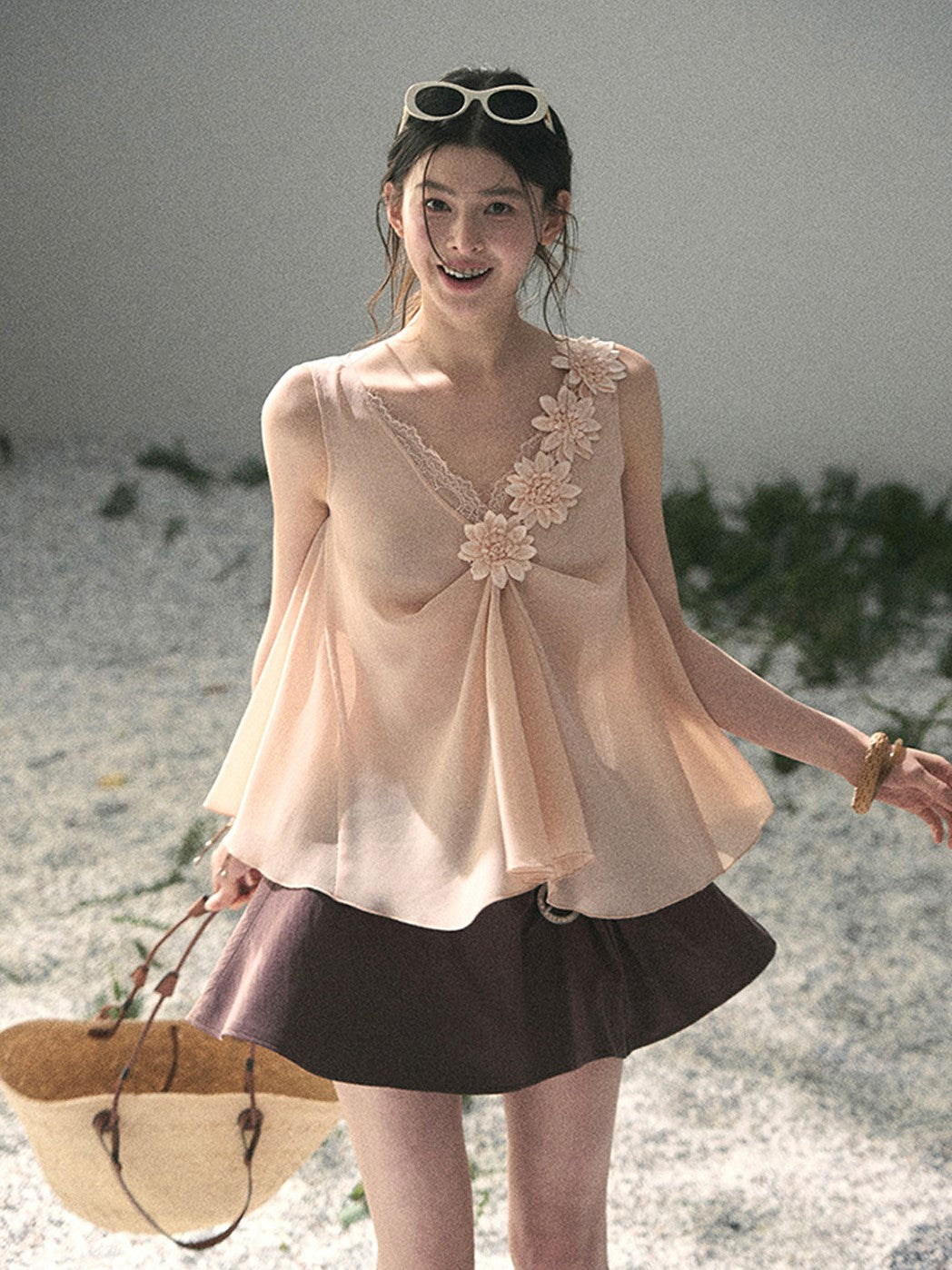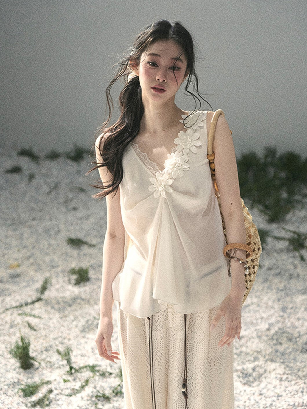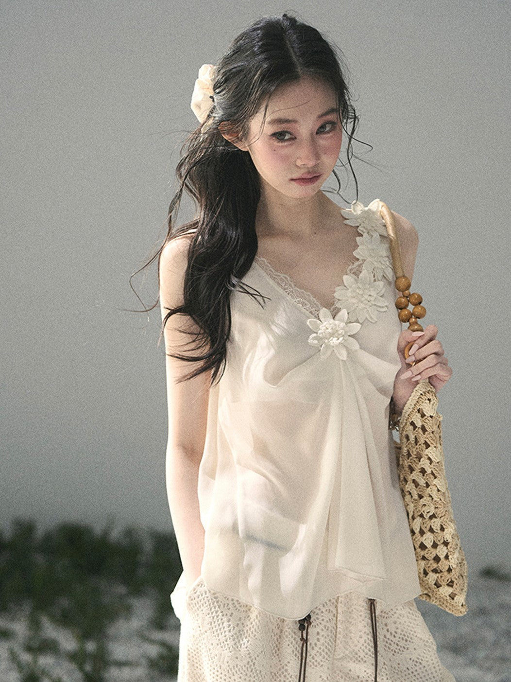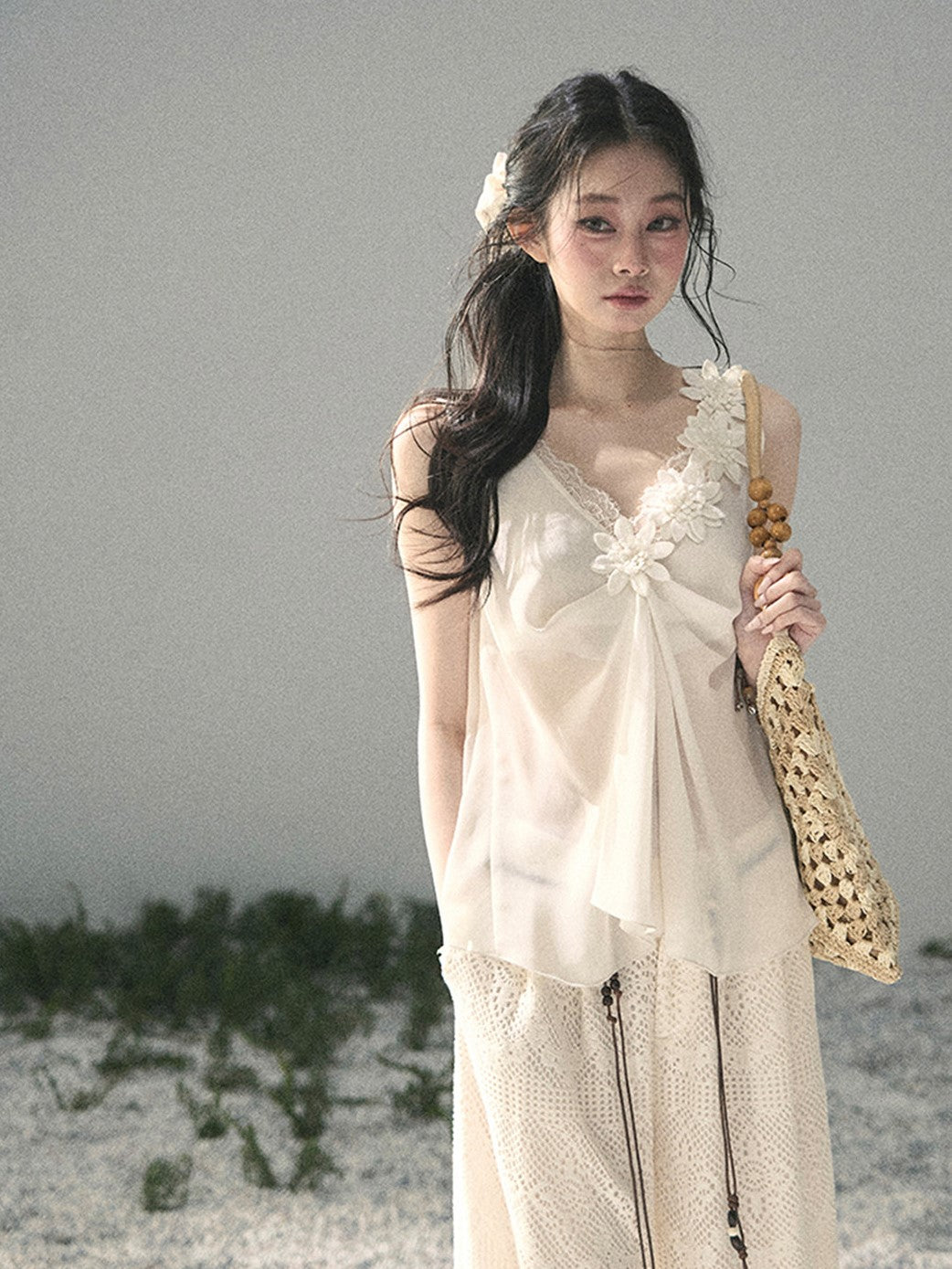 Lace Sheer Floral Sleeveless Top DIA0895