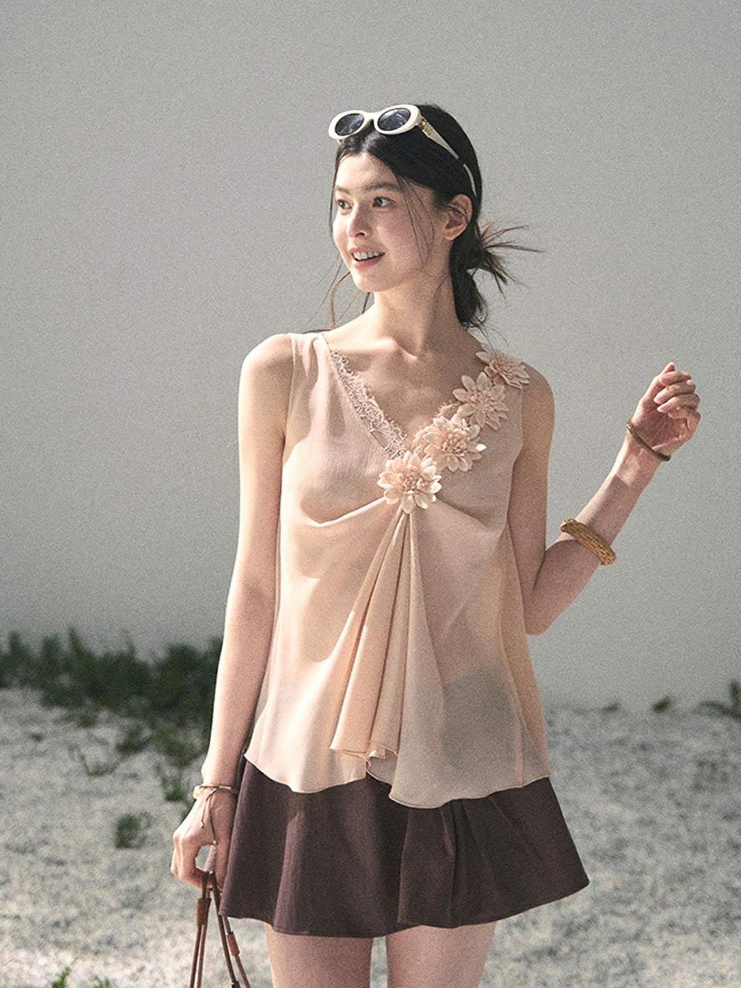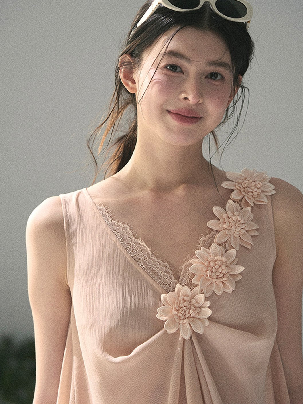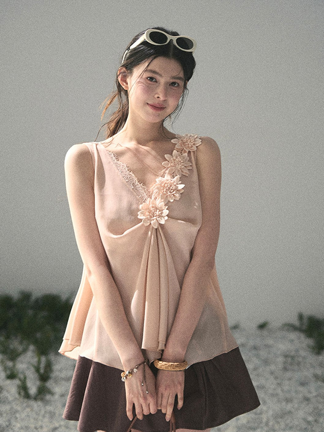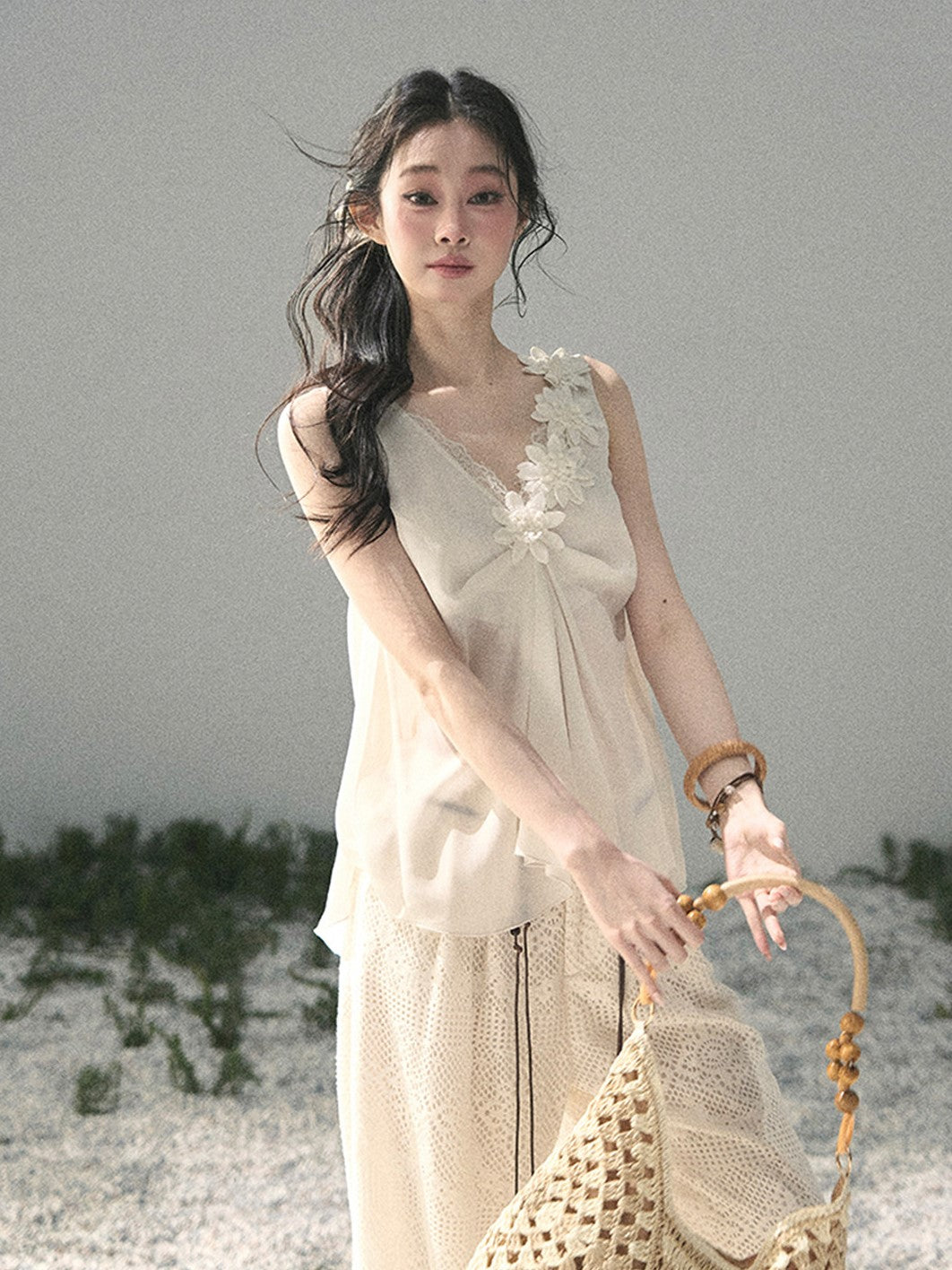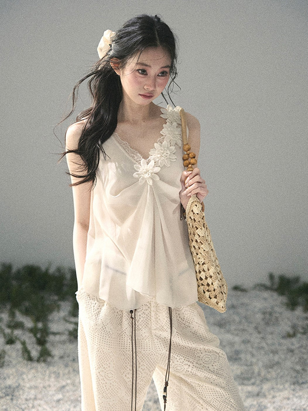 Lace Sheer Floral Sleeveless Top DIA0895
