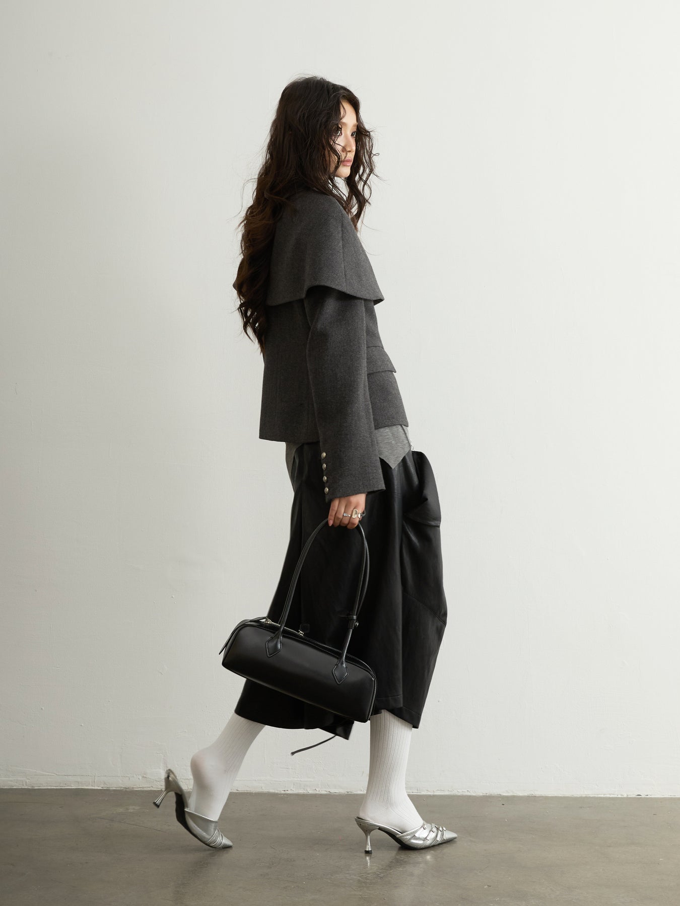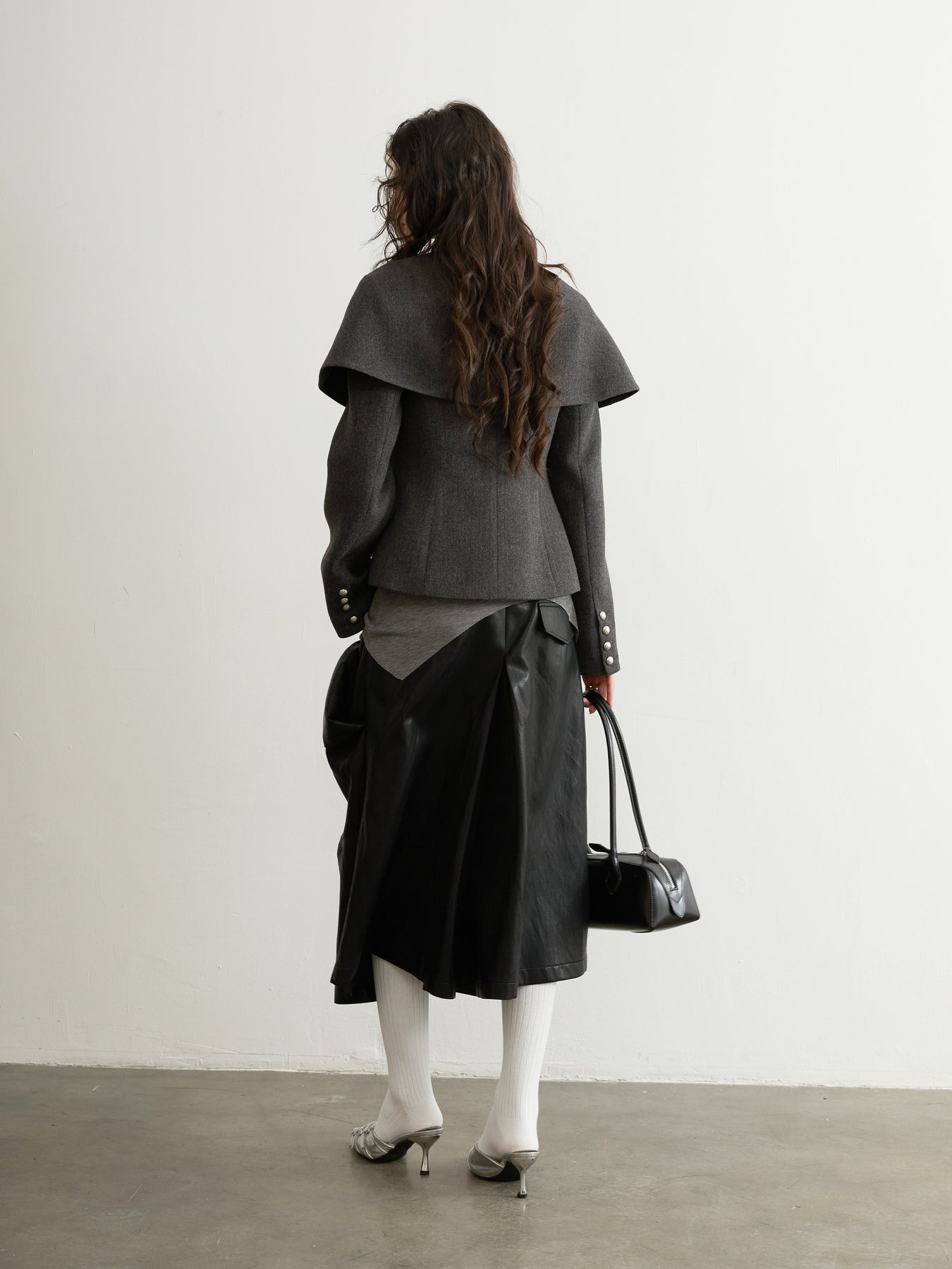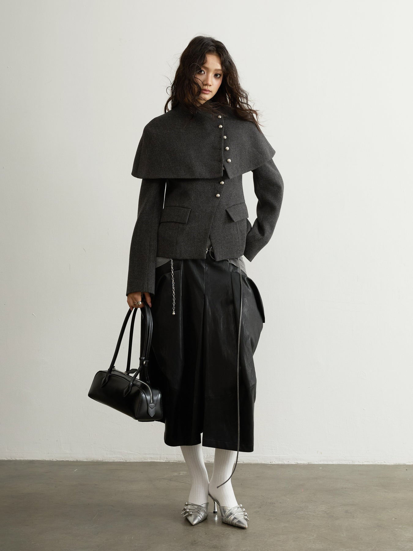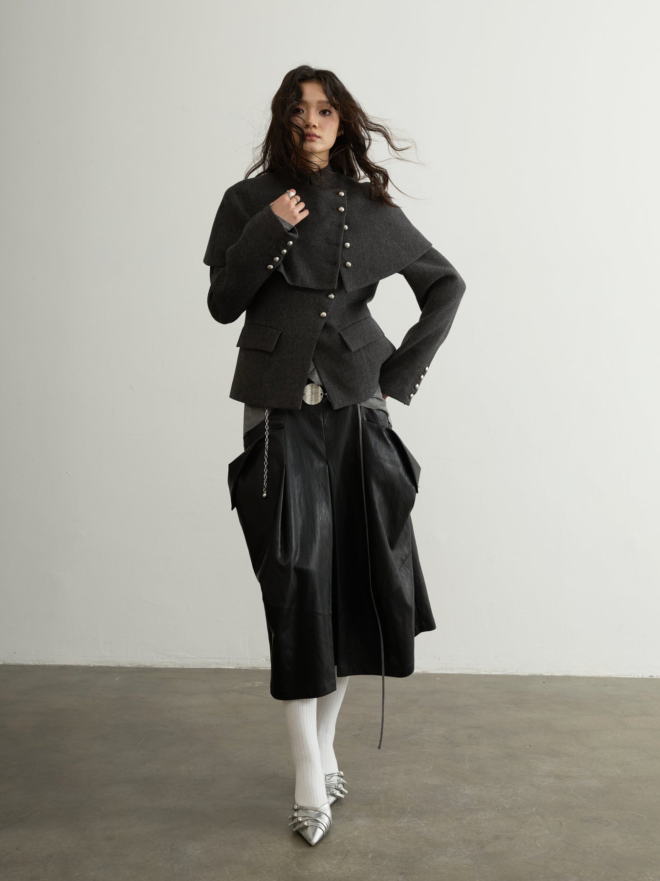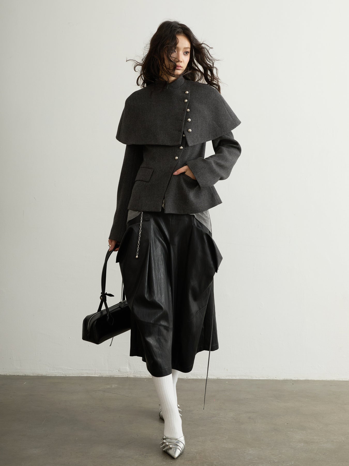 Dark Grey Wool Detachable Cape Jacket JNY0294