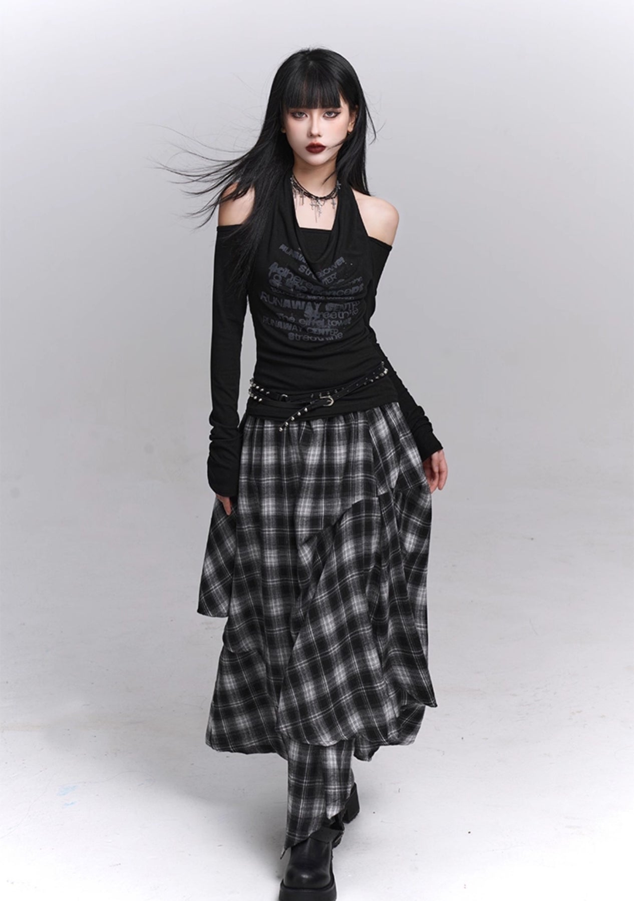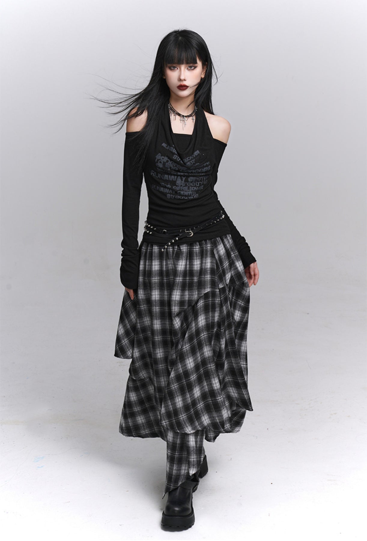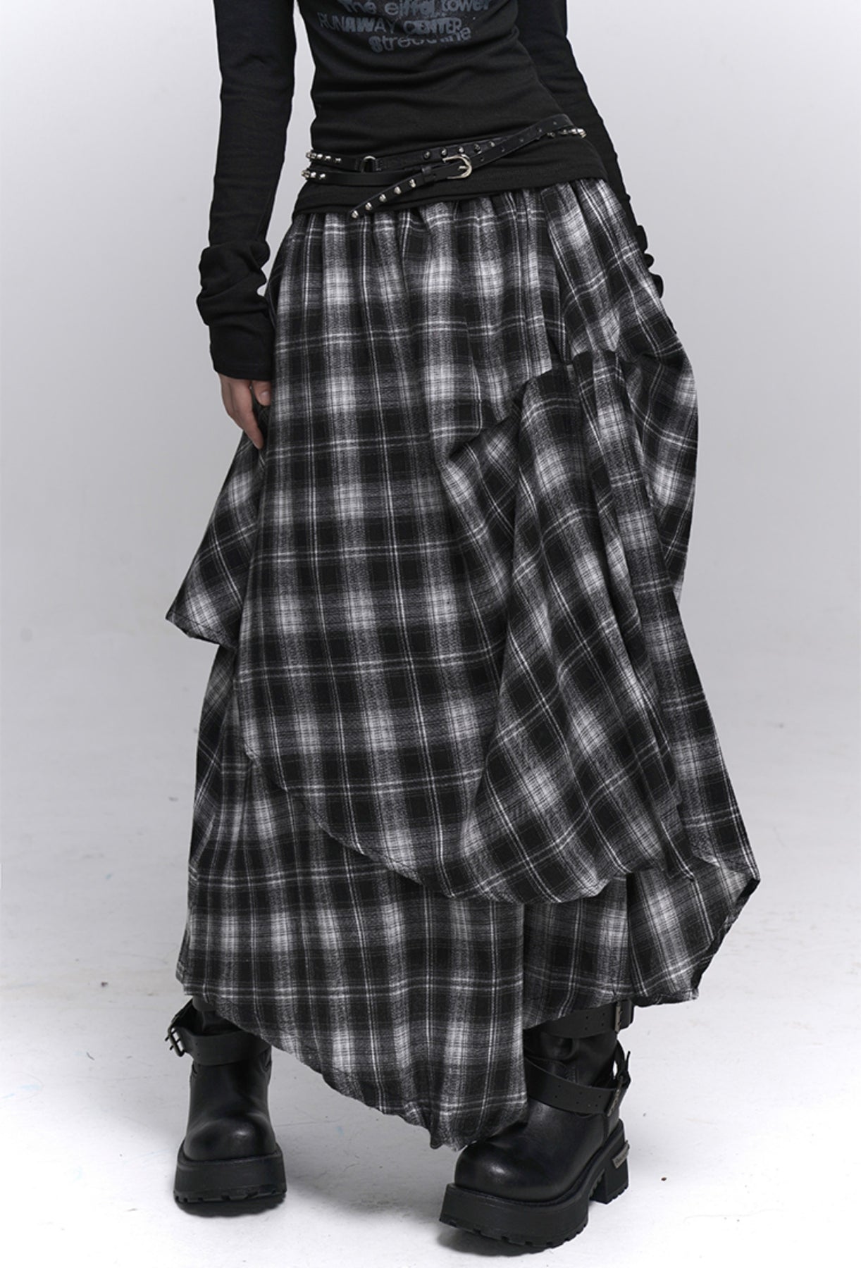Irregular Plaid Midi Skirt LAD0224