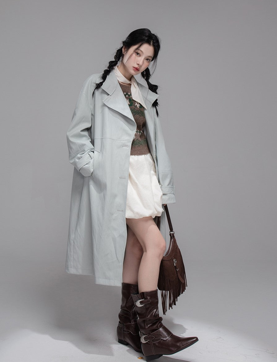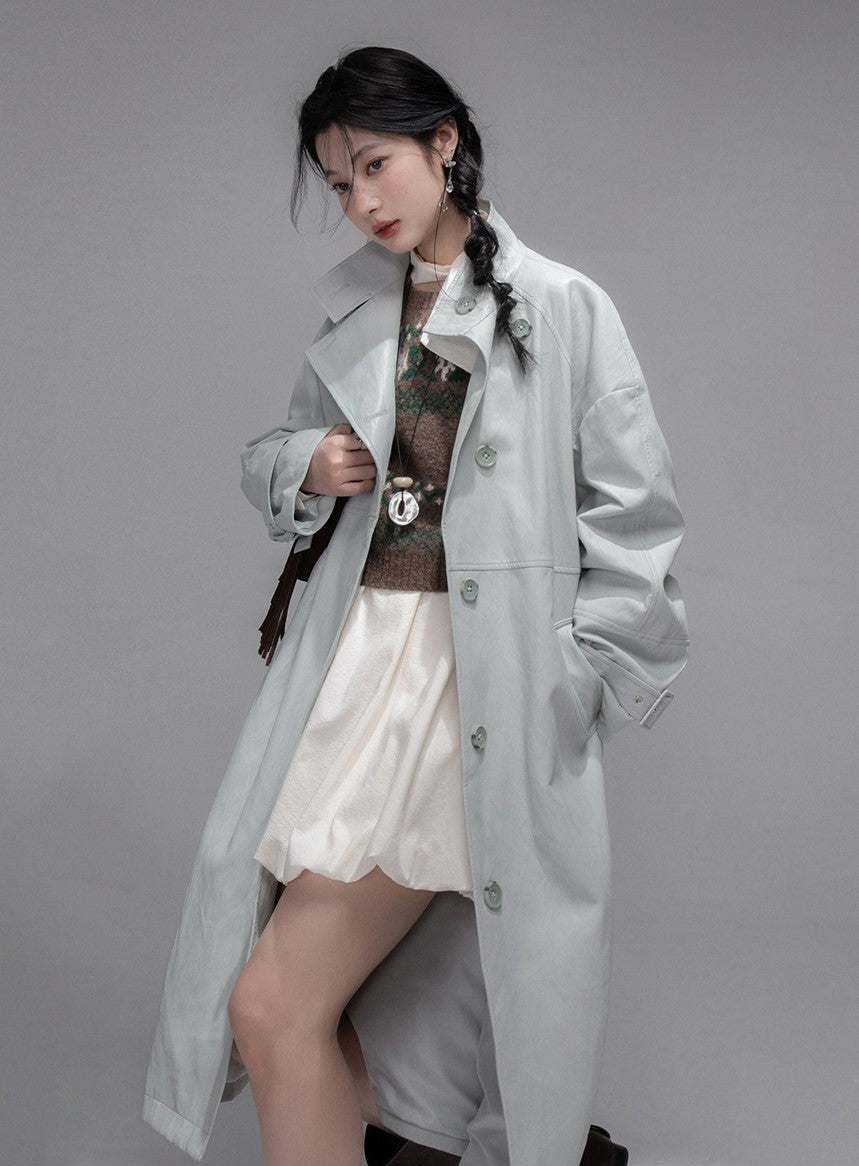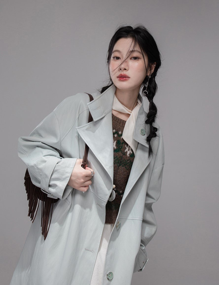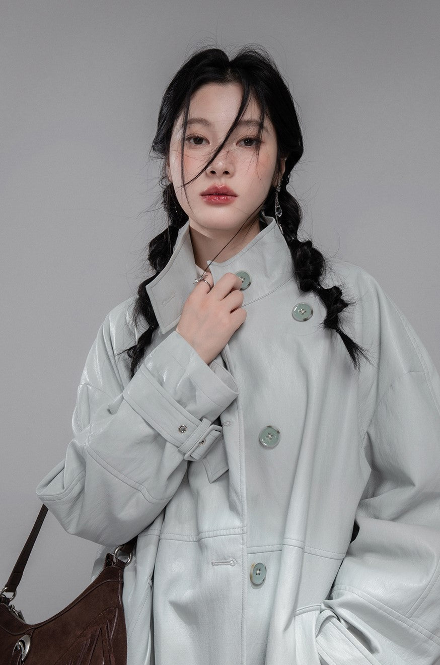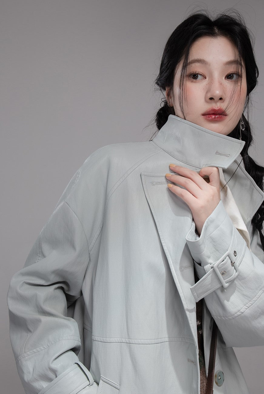 Gray Blue Leather Coat COT0354