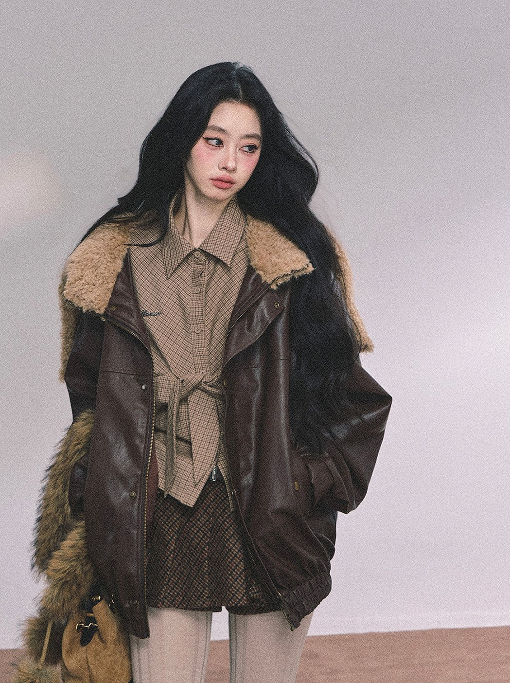 American Navy Collar Leather Jacket DIA0615